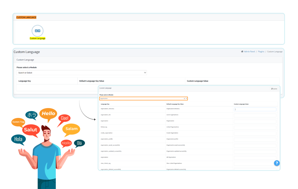 Assurez des flux de travail fluides en alignant les modifications linguistiques avec les modules organisationnels.